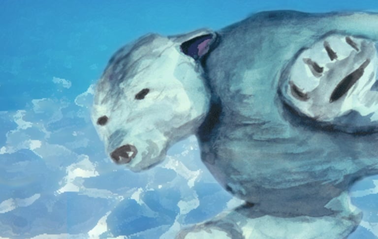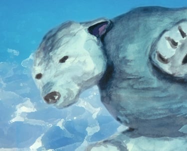 The moment came from a quick sketch made during a visit to the zoo—one of those brief, perfect pauses when the bear dipped beneath the water. It was too beautiful not to bring home in paint.