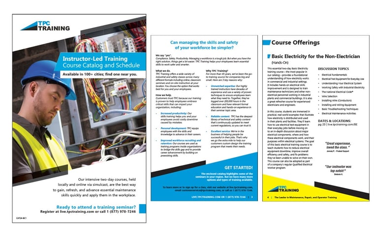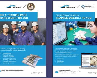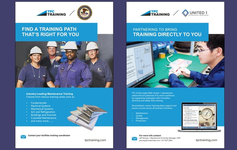 I designed a series of one-page brochures aimed at diversifying their training offerings and highlighting their foray into online and digital technology. The challenge was to maintain the brand’s strong reputation for in-person training while making the new formats feel just as credible and engaging. I focused on clean layouts and clear visuals to make the information easy to scan, while using design cues that communicated innovation and accessibility. The result was a set of brochures that helped position TPC as forward-thinking and adaptable, showing clients that their expertise could now extend beyond the classroom.